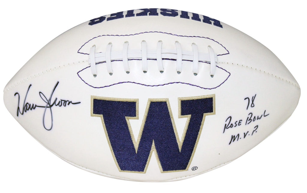 WARREN MOON SIGNED WASHINGTON HUSKIES WHITE LOGO FOOTBALL W/ 78 ROSE BOWL MVP